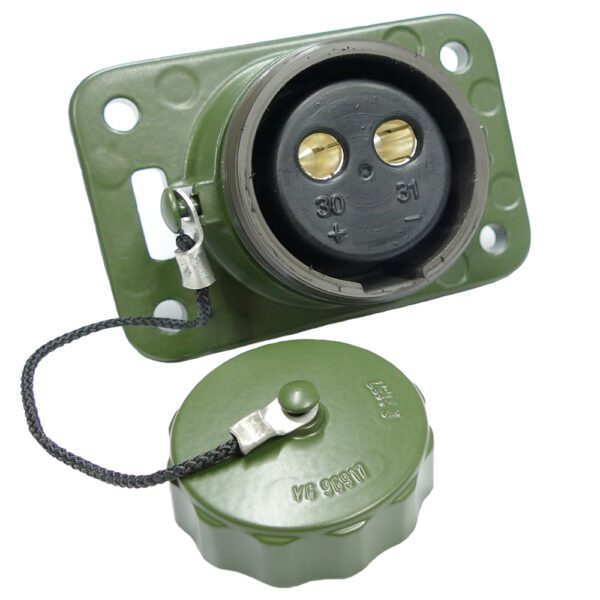 Steckdose 2-polig, 24V, olivgrün, mit Schraubkappe und Kordel, ohne Kontakte